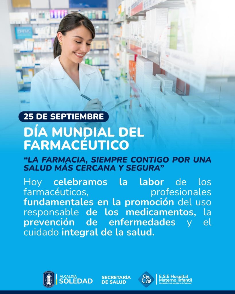 Desde el sector salud en Soledad, exaltamos su compromiso y agradecemos a cada farmacéutico por ser parte esencial de un sistema de salud más seguro, confiable y humano. ❤
