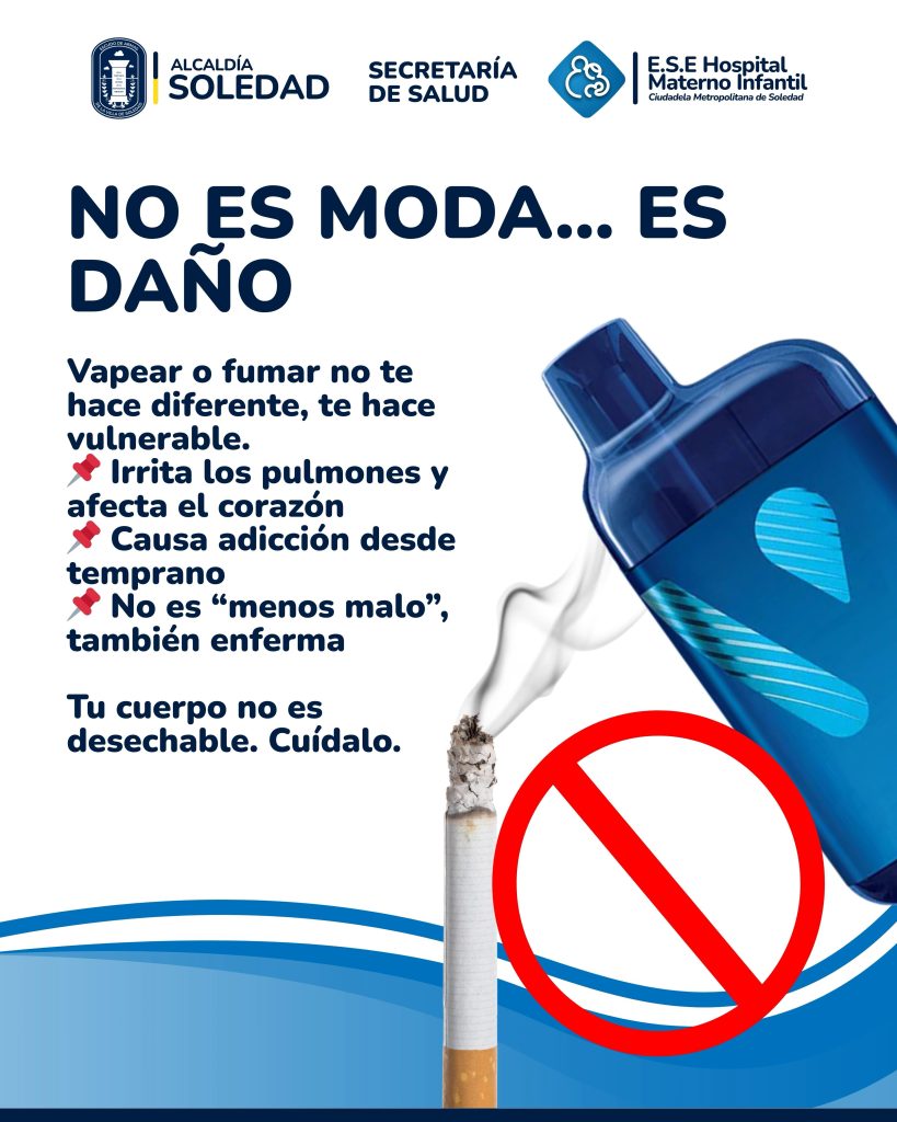Vapear o fumar no te hace diferente, te hace vulnerable. Aunque muchos lo vendan como algo “menos malo”, la realidad es otra: irrita los pulmones, afecta el corazón y puede generar adicción desde edades tempranas.