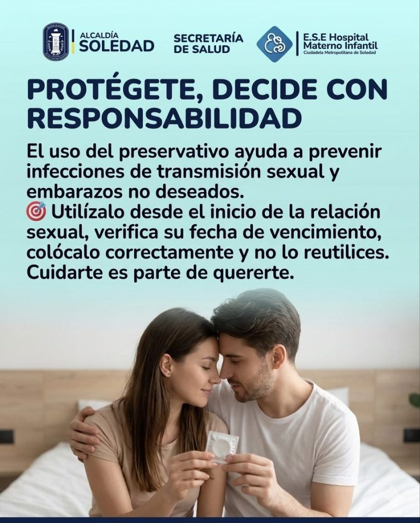 🛡️ En la Alcaldía de Soledad, la Secretaría de Salud y el E.S.E. Hospital Materno Infantil, promovemos una vida sexual plena basada en el autocuidado y la responsabilidad. Porque tomar decisiones informadas es la mejor manera de demostrarte cuánto te quieres.